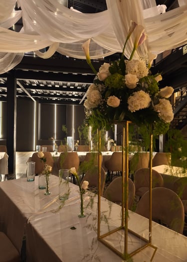 Decoramos con flores todo tipo de eventos especiales y fiestas, creando ambientes elegantes y personalizados para cada celebracion.cn.